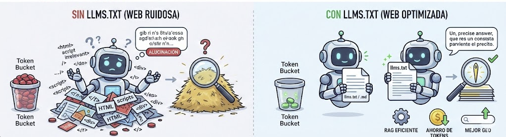 La importancia de llms.txt radica en dos conceptos técnicos clave: